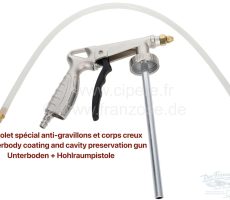 Pistolet de pulvérisation avec tuyau diffuseur long. Permet l’utilisation de la cire à corps creux