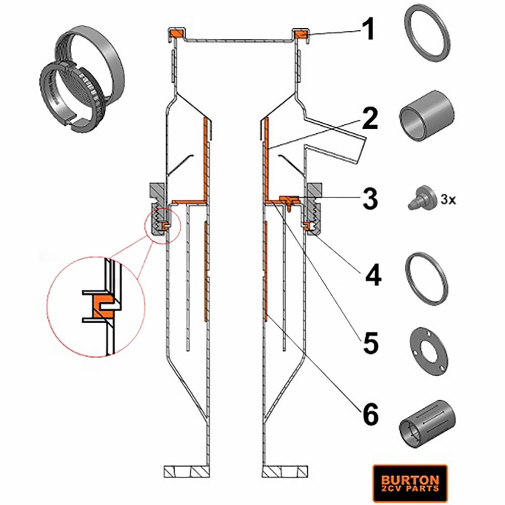 Avec ce kit de réparation, vous pouvez restaurer votre reniflard d’origine.Vous ouvrez le reniflard par broyage de la couture. Le tube de remplissage peut ensuite être nettoyée, et le nouveau caoutchouc peut alors être placé. Le reniflard est fermé avec le collier d’aluminium fourni. La bague en aluminium est serrée à la main, serrage avec une pince n’est pas nécessaire et peut détruire le filetage. Les pièces dans ce kit sont tous de la bonne coupe pour un reniflard d’origine. La révision d’un reniflard d’imitation des petits modifications doivent eventuellement être fait.